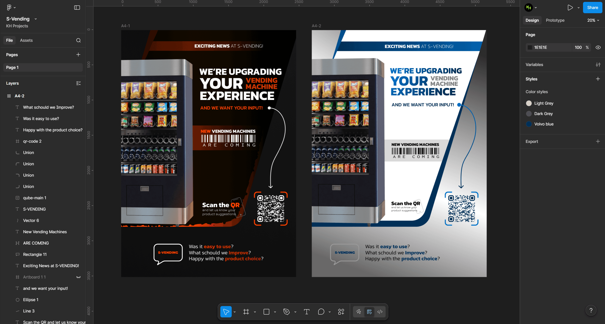 I designed a printed brochure for S-Vending used as a direct client outreach tool to collect structured feedback about vending machine experience. The material was distributed physically to existing customers and linked to a survey via QR, acting as a bridge between offline communication and digital data collection.